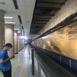 位于西直门站的《大江东去图》和《燕山长城图》,东四十条站的《华夏雄风》和《走向世界》,建国门站的《中国天文史》和《四大发明》,是中国地铁史上第一批公共壁画。3座车站,6幅壁画,构成了最早的中国地铁艺术世界,步履匆匆中,中国的大好河山、灿烂文明、体育精神在这里交相辉映。