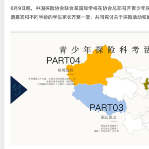 中国探险协会官网6月15日发布的一篇《唤醒孩子的探险精神,来这里开启一场探索之旅》文章也提到,6月9日晚,中国探险协会联合某校在协会总部召开青少年探险科考训练营家长说明会,共同探讨关于探险活动和留学申请的问题。