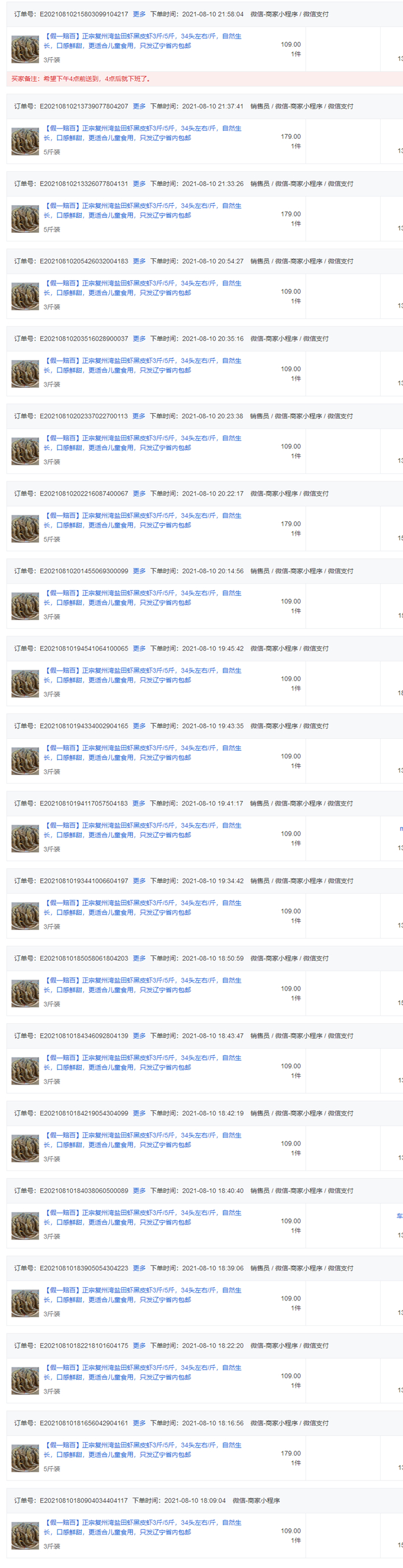 “本来想休息2天,但订单太多,明天早上继续复州湾收虾去!”