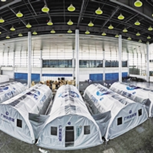 8月11日上午,两组“猎鹰号”硬气膜实验室在扬州国际展览中心投入使用,助力扬州打赢疫情防控阻击战。