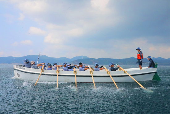 “海峡勇士”系列舢舨远航训练是大连舰艇学院培养一流海军军官的特色海上训练项目,此前已成功举办24届。参训学员通常从辽东半岛出发,克服高温、高湿等恶劣环境,一路战风斗浪,操纵重达3吨的12桨无动力舢舨,日均摇荡木桨数万次,穿越多条凶险涌急的水道抵达山东烟台,完成总航程130余海里“徒手”横渡渤海海峡的壮举。