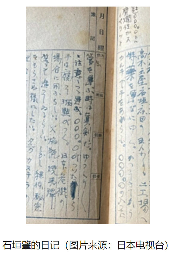 当时石垣肇撰写的日记被保存到现在,上面写道,“听说这些毒气弹在日本陷入危机时将被使用。绝对不能将秘密泄露出去”。