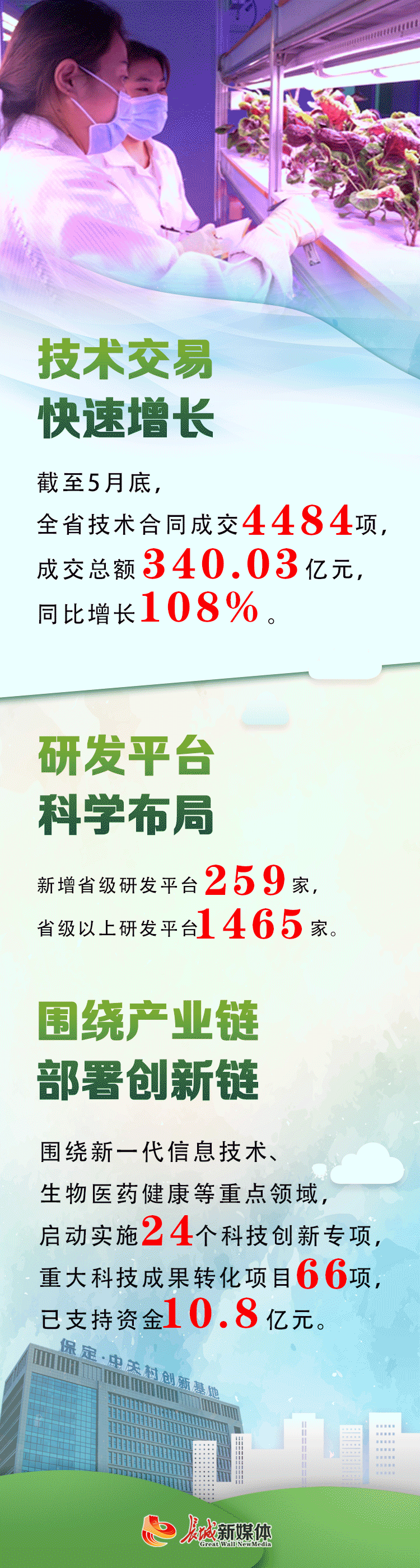 今年上半年,河北积极对接国内外高端创新资源,与广东松山湖材料实验室联合推动“新一代多孔介质燃烧”等多项技术在河北实现转化应用。同时,拓展技术合作渠道,截至今年5月底,全省技术合同成交4484项,成交总额340.03亿元,同比增长108%。