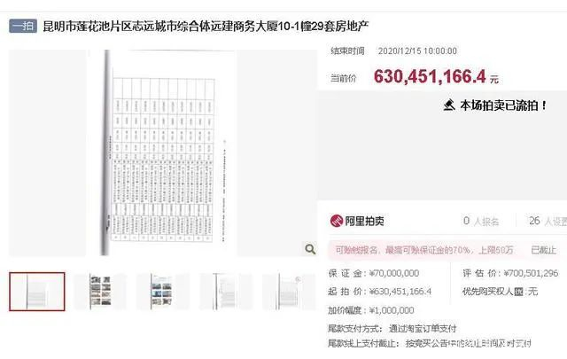 与莲花池国际商贸城后续用地命运不同,莲花池国际商贸城此后历经3次法拍都无人报名,标的底价也由7亿降至5.04亿元,但还是没有逃脱流拍的命运。