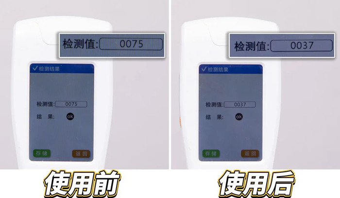 使用前经测量细菌数量90,用了三德立洁厕器冲洗过的马桶,测出来的细菌数量变成0。