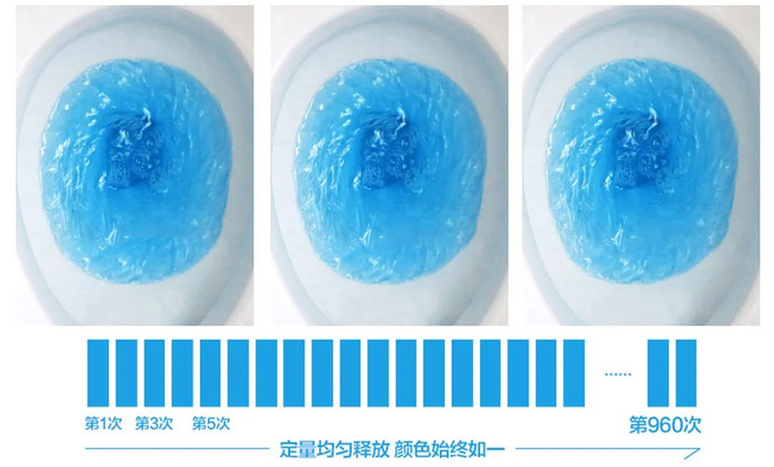 不管放置多久,水箱和马桶里的水,依然是带有超强清洁杀菌功效的蓝色液体。