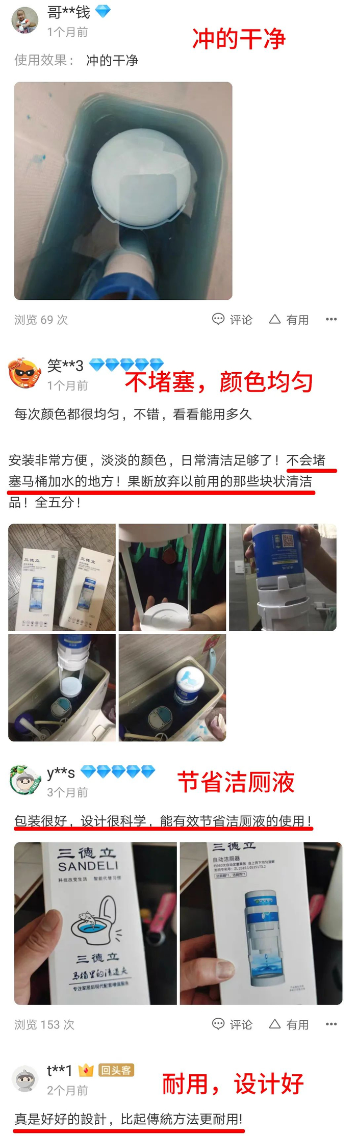使用过三德立洁厕器的小伙伴,也都是满满的好评和回购。