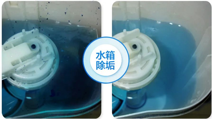 马桶使用久了,水槽箱也是容易藏污纳垢的地方。水垢、细菌经过一晚浸泡,也被渐渐瓦解了。