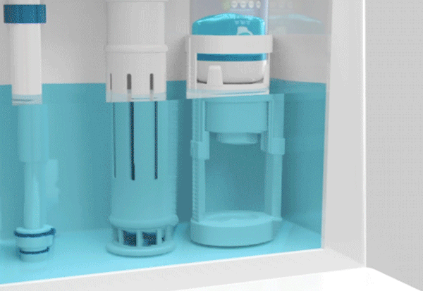 而三德立洁厕器却内含乾坤,可以根据水的浮力自动开合,每次自动调节释放出定量的清洁液。