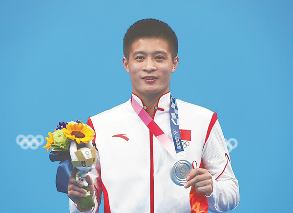 中国选手杨健在颁奖仪式上。新华社发