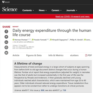 8月13日,中国科学院深圳理工大学(筹)药学院讲席教授、中国科学院深圳先进技术研究院医药所能量代谢与生殖研究中心首席科学家约翰·罗杰·斯彼克曼(John Roger Speakman)团队联合杜克大学进化人类学副教授赫尔曼·庞泽(Herman Pontzer)等多个国际团队的最新研究成果发表于《科学》杂志。该研究通过大规模的国际合作,准确测量了人类从出生到老年代谢率的高峰和低谷,首次揭示了全生命周期的代谢规律。