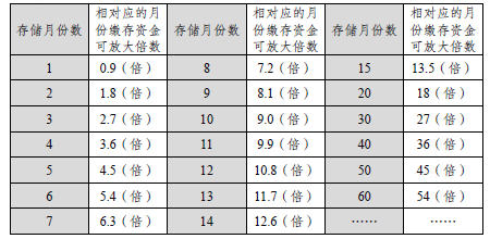 目前,存贷系数执行标准为0.9,相对应的月份缴存资金贷款额度可放大倍数分别为: