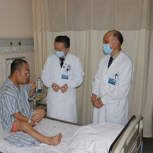 图说:李青峰教授、韦敏主任医师常至床边与方元亲切交流 采访对象供图(下同)