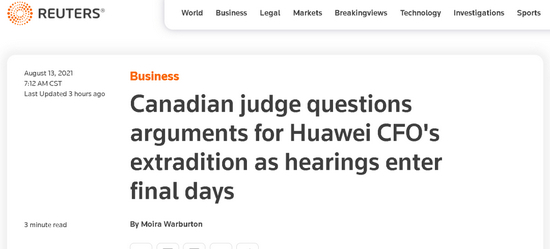 但他对这起“不寻常”的案件做出的“不寻常”的表态,却引起了包括英国路透社在内诸多国际媒体的关注。而且路透社还直接将这名加拿大法官的疑虑写在了报道的大标题里。