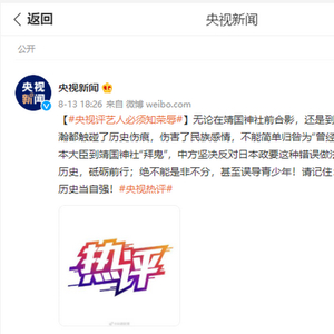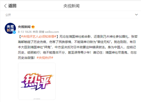 无论在靖国神社前合影,还是到乃木神社参加婚礼,张哲瀚都触碰了历史伤痕,伤害了民族感情,不能简单归咎为“曾经无知”。就在刚刚,有日本大臣到靖国神社“拜鬼”,中方坚决反对日本政要这种错误做法。身为中国人,应铭记历史,砥砺前行;绝不能是非不分,甚至误导青少年!请记住:靖国神社尽是鬼,勿忘历史当自强!