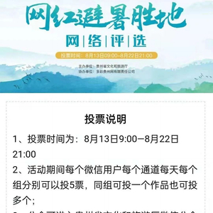根据网络投票的结果,贵州省文化和旅游厅将组织合作媒体、相关专家进行最终评审,选出2021“贵州十佳网红避暑胜地”,面向社会公示,同时组织媒体对最终评选出的“贵州十佳网红避暑胜地”进行宣传推广,为赴黔游客提供贵州避暑胜地出游攻略。