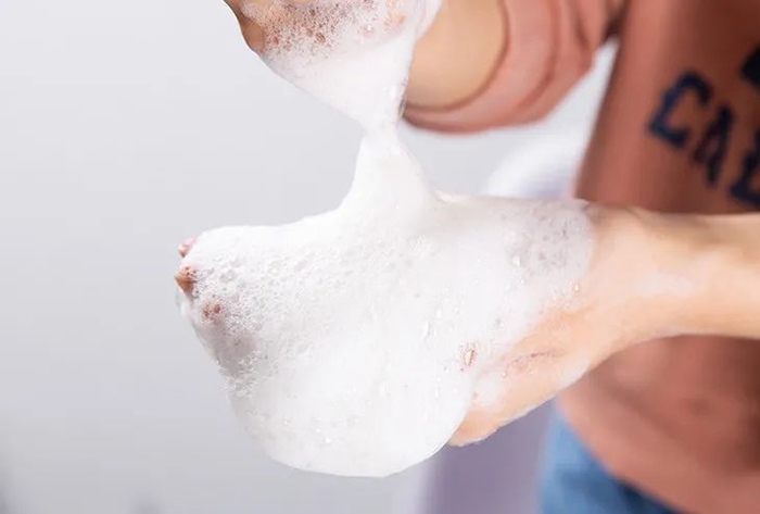 轻揉几下,泡沫细腻又绵密,接触头皮也不会有涩涩的感觉,非常舒服。