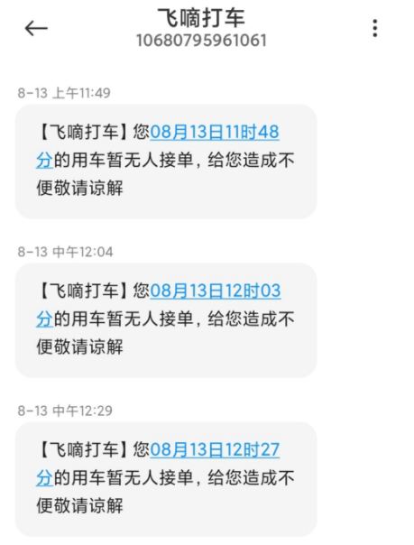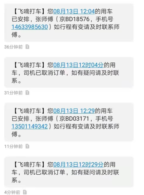 原本以为是附近没有空车,但当记者再次拨打96106电话,把目的地转为20公里以外的望京时,竟然有司机“秒接单”。随后,记者同时用两个号码拨打了96106电话,一单目的地是友谊医院,另一单是望京。前者过了10分钟也显示无人接单,后者则又是“秒接”。再次用同样的方式试验,又是同样的结果。