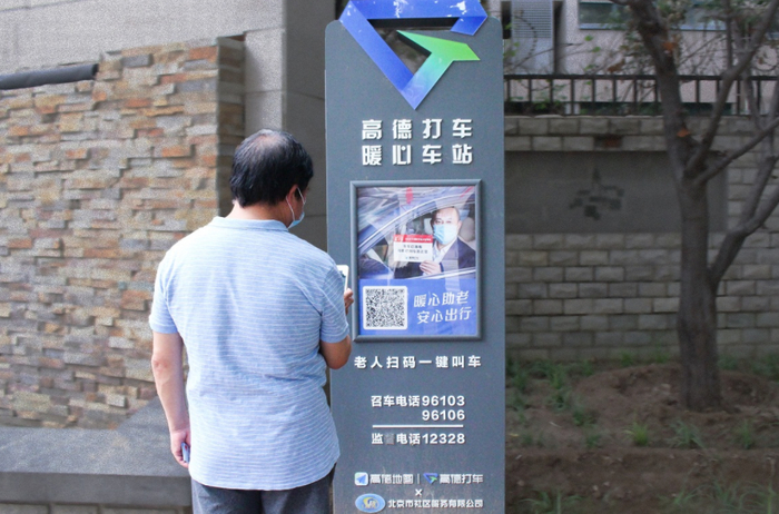 这样的暖心车站,是由高德打车和北京市社区服务相关单位合作设立,目前选取了北京的20个小区作为试点。这20个小区大多人口密集,有的还是北京市老龄化人口服务重点社区。高德打车表示,相比于快车,老年人对于出租车的信任度更高,因此暖心车站的后台系统只会把叫车请求发送给附近的出租车。