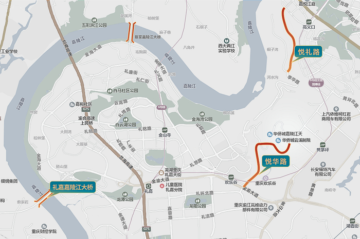以往悦来到礼嘉,只能绕行金山大道,而悦礼路投用后,两地的联系更加便捷了。