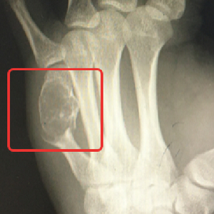 2.关节周围肿块常为首发症状,一般无症状。肿瘤较大者压迫附近的肌腱、血管和神经时出现疼痛。当出现疼痛加剧就要警惕病理性骨折以及肿瘤恶变的风险。