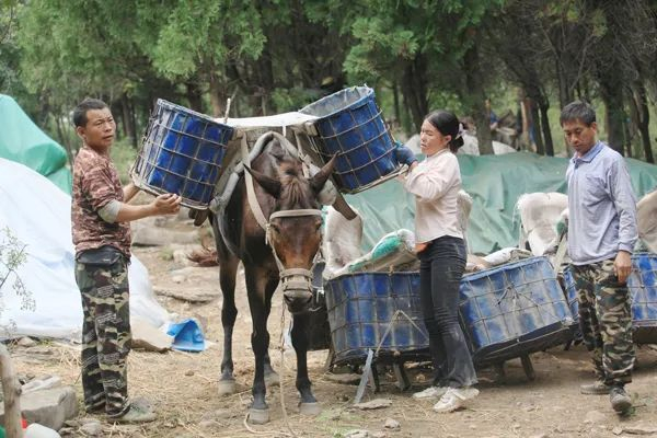 正被开辟的蚰蜒山,车辆行驶到山脚下,便无法通行。修路,需要运送建材,人力有限,马帮便承担了这样的重任,一匹骡子一次能运送四百斤建材,一天常常要跑个十多趟。张顺朋说,最远的距离大约是三四公里,往返常常要用很久。