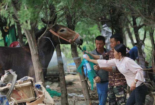 骡子是马帮运转的主力,赶马人尤为爱惜骡子。每天午休前,一定先喂好骡子,给它们包扎好伤口,喷上杀虫剂,确保安心后,才回到自己的临时宿舍中。