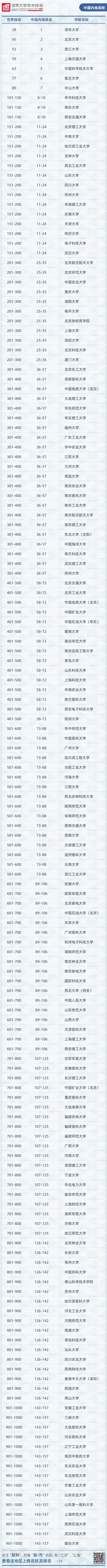 “2021软科世界大学学术排名”