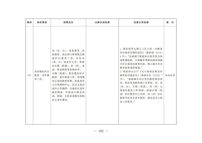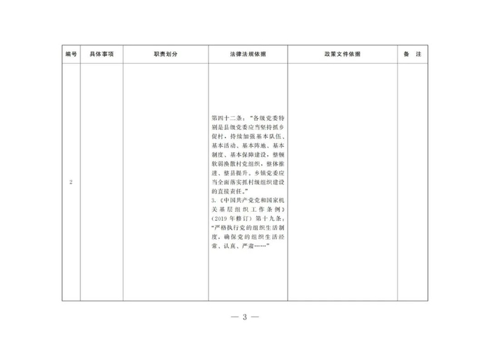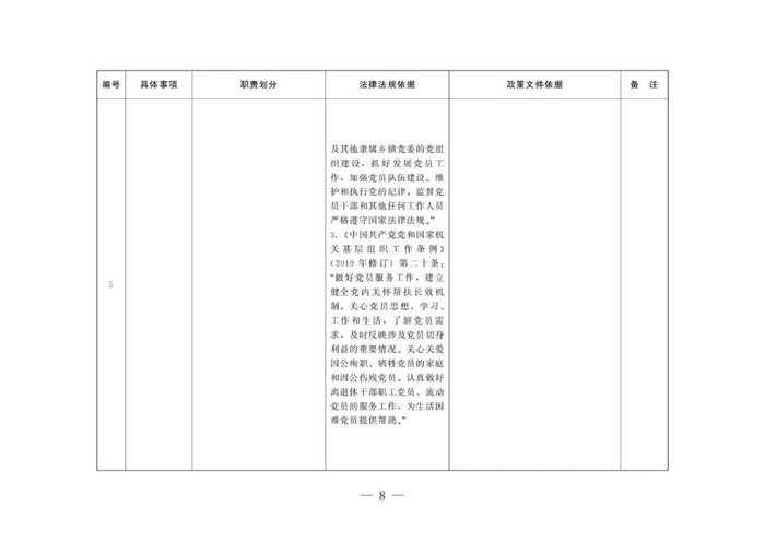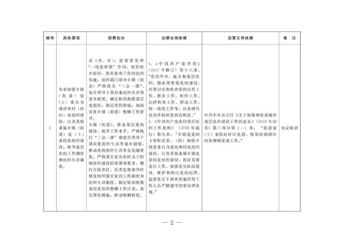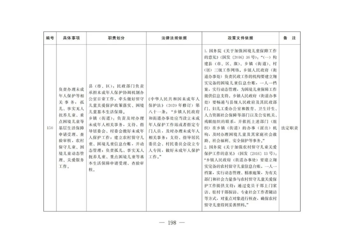 据了解,《指导目录》从基层党建、农业农村(经济发展)、综合治理(综合执法)、公共服务等七个方面明确乡镇(街道)应承担的176项具体职责任务,其中150项为法定职责、26项为承办任务,为构建“照清单履职、依清单办事”的精细化管理制度体系提供了依据。