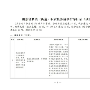 8月16日,记者从省委编办了解到,由省委编办、省委组织部、省民政厅联合印发的《山东省乡镇(街道)职责任务清单指导目录(试行)》(简称《指导目录》)公布。