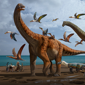 新疆哈密,在1亿多年前曾是翼龙的天堂。在21世纪的今天,科学家在翼龙化石的富集地区,又发现了一种大型恐龙化石。人们据此可以勾勒出这里曾经的样子:天上有翼龙,地面有巨龙。