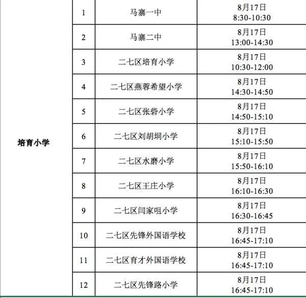 为扎实稳妥推进12至17周岁人群新冠病毒疫苗接种工作,郑州市制定了《郑州市12—17周岁人群新冠病毒疫苗接种指导方案》,明确了目标人群、组织领导、进度安排等主要内容,计划于8月17日起开展12至17周岁人群第1剂次接种,8月24日前完成第1剂次接种,9月15日前完成第2剂次接种。