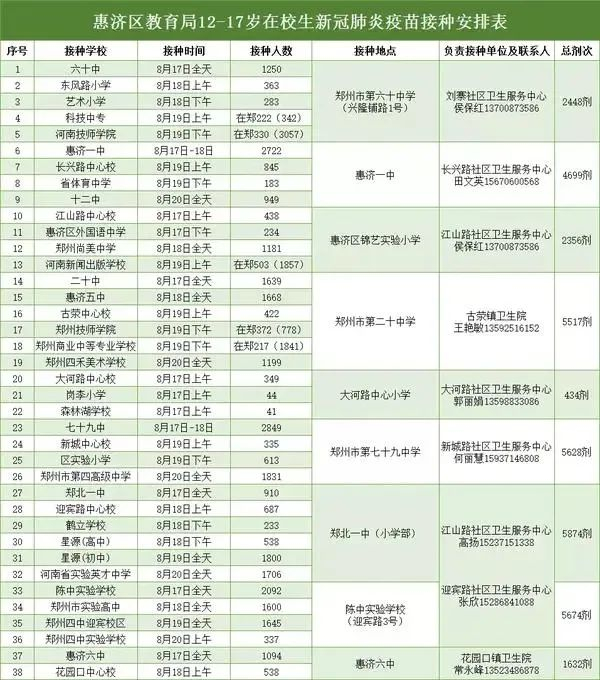 8月17日至24日,惠济区将统一组织12—17岁在校学生入校进行新冠病毒疫苗接种。