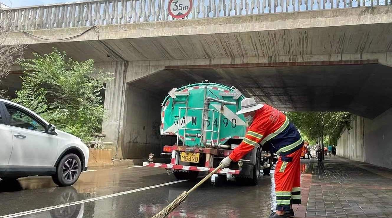 记者探访北京海淀区旱河路铁路桥:积水排空 来往车辆正常通行