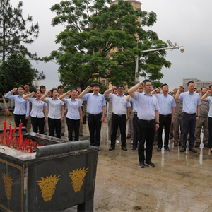 林周(前)带领广西盛隆冶金有限公司开展党建活动(央广网发 受访者供图)