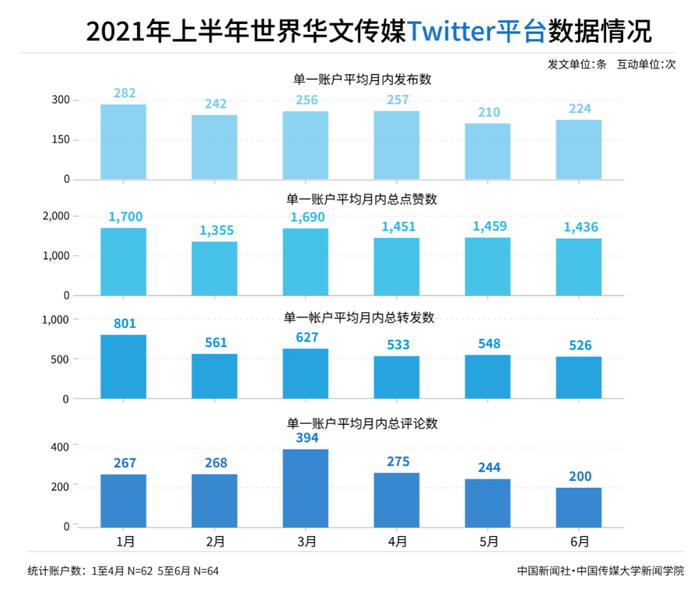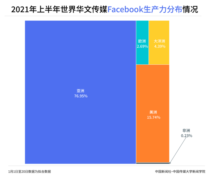 亚洲地区(不包括港澳台地区),尤其是马来西亚、新加坡、泰国、韩国等东南亚和东亚国家华文基础深厚,华语在当地社会有着较大的影响力和传播力,在Facebook、Twitter两个社交媒体平台上占有发展优势。该地区华文传媒2021年上半年在Facebook平台的推文数量占世界华文传媒Facebook推文总数的76.9%,在Twitter平台全部发文中占比82.3%。该地区上半年Facebook平台的条均点赞量超过世界华文传媒Facebook平台条均点赞量28.1%,该地区上半年Twitter平台的条均点赞量超过世界华文传媒Twitter平台条均点赞量的21.1%。