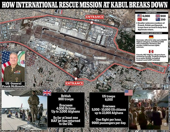 周日乘坐美国C-17运输机撤离的640名阿富汗人