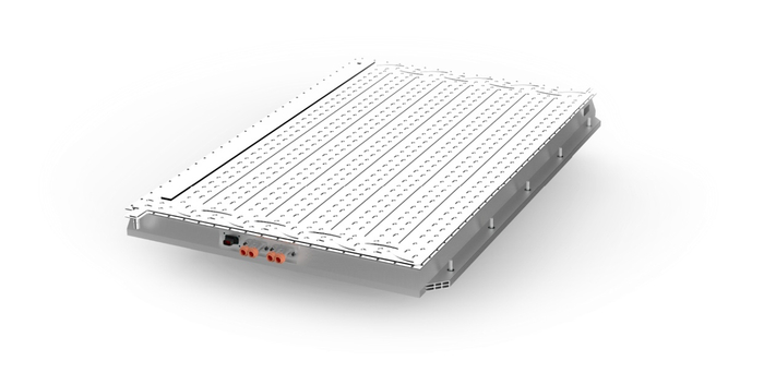 比亚迪刀片电池自身的强度来实现自我支撑,同时再依靠集成后的电芯强度来增加整个电池包的结构强度,100个刀片电池组成的电池排布在一起,并且上下两面各加一块高强度蜂窝铝板,组成类蜂窝铝三明治稳定结构。