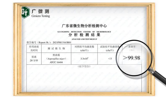 净狮的除霉效果可是有专业检测报告盖章认证的,除菌率高达99.98%,放心用就对了。