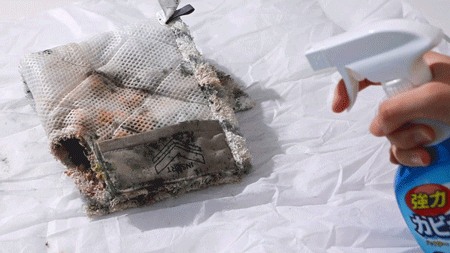 我们用里外都发霉的拖布做了测试,用净狮只喷在表面就能消灭已经长了长毛的霉菌。