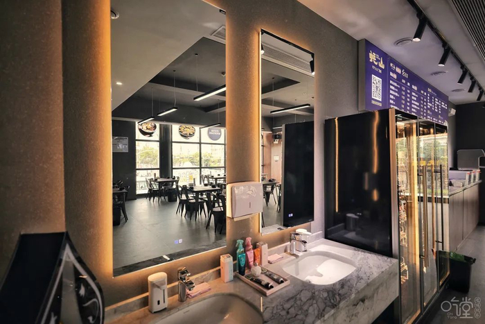 蘸水里有蒜,那就准备免费的绿箭口香糖和漱口水;为女士们送上头绳和发卡,方便用餐;洗手台旁摆放着的洗手液和护手霜,都是质量上乘的品牌;前台任客人取用的打火机是定制的,音响用BOSE,空调是大金……只要能提升体验,毫不吝惜成本,哪怕这些可能并不会被客人察觉。