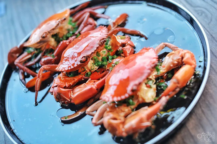 三只硕大的缅甸公青蟹整齐齐码在盘子里,油光衬得蟹壳色泽红润,加上碧绿的葱花,卖相十分好看。青蟹肉质饱满紧实,秘制葱油香味浓郁却又不至于喧宾夺主,恰到好处地衬出青蟹的甜与嫩。