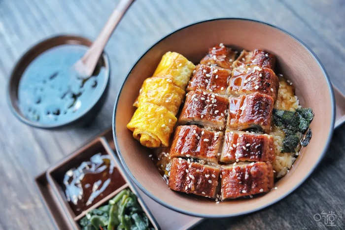 适合工作人士午餐食用的日式鳗鱼定食,配有辣味海带苗、照烧酱汁和紫菜汤。将香甜的酱汁涂抹在炙烤过的鳗鱼上,配合泰国香米饭一起食用,入口米香鱼香层层交织,酥脆绵软。再来一个可爱软糯的厚蛋烧,下午工作也是元气满满!