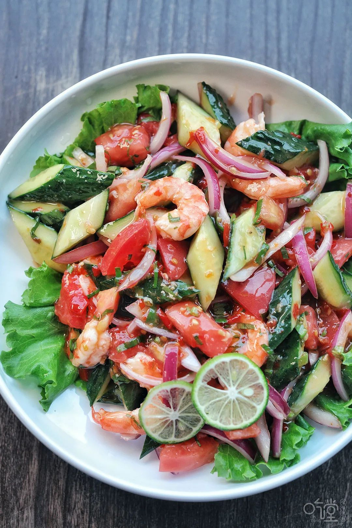 虾仁、黄瓜、西红柿和洋葱配上酸甜开胃的沙拉汁,野芫荽和小米辣让整道菜十分开胃。喜爱轻食、注重饮食健康的你,一定会被这道0负担美味击中。