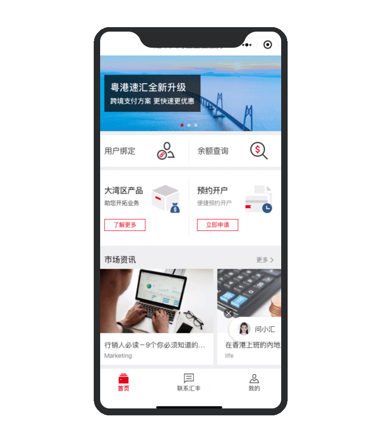 微信小程序(汇丰大湾区企业服务小程序)即可随时预约开户