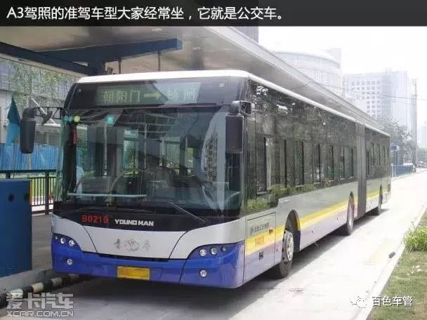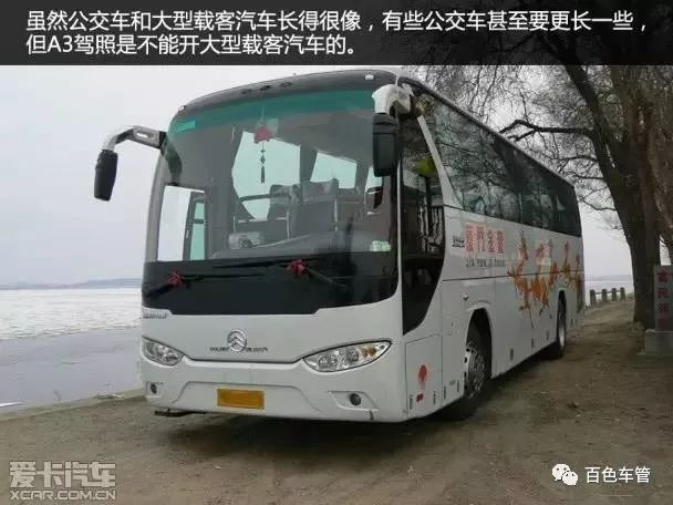 这里需要说明的是,A3证不可以驾驶B1或B2车型。另外,虽然公交车和大型载客汽车长得很像,有些公交车甚至要更长一些,但A3证是不能开大型载客汽车的。