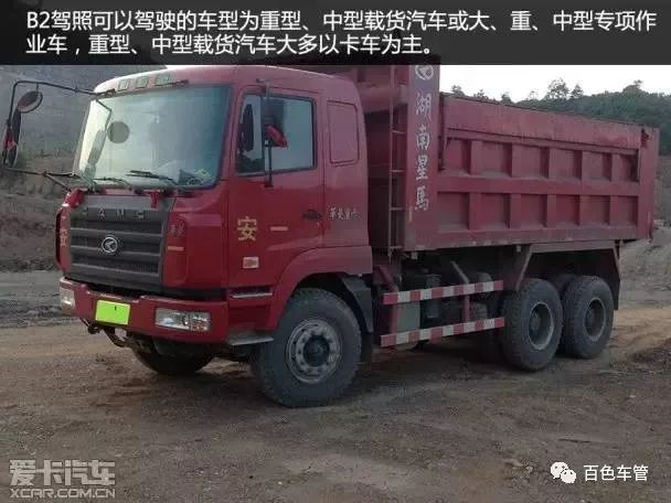B2证可以驾驶的车型为重型、中型载货汽车或大、重、中型专项作业车,重型、中型载货汽车大多以卡车为主,比如我们平时在路上经常看到的拉渣土的大卡车就属于重型卡车。大、重、中型专项作业车指的是装置有专用设备或器具的汽车,比如洒水车、混凝土搅拌车、消防车等。
