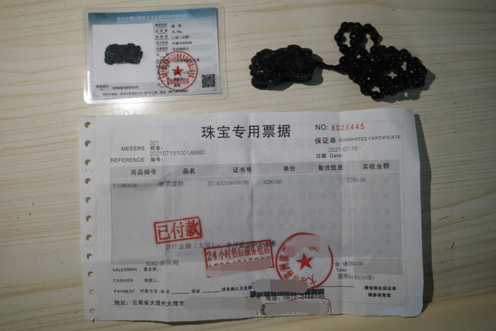 墨翠貔貅和购物发票