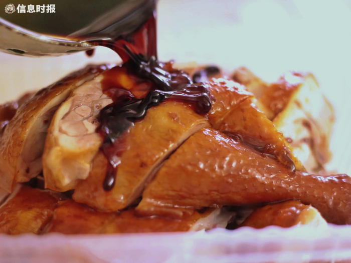 喜欢重口味一点的话,豉油鸡或许会啱你心水。经过卤制的豉油鸡,鸡皮上呈现琥珀般的色水,均匀而有光泽,鸡腿饱满鸡皮纹路清晰,一看就很“够身”(养足日子)。店员介绍说,每日中午和傍晚收档前都有特价优惠,“这时候来最抵买。”