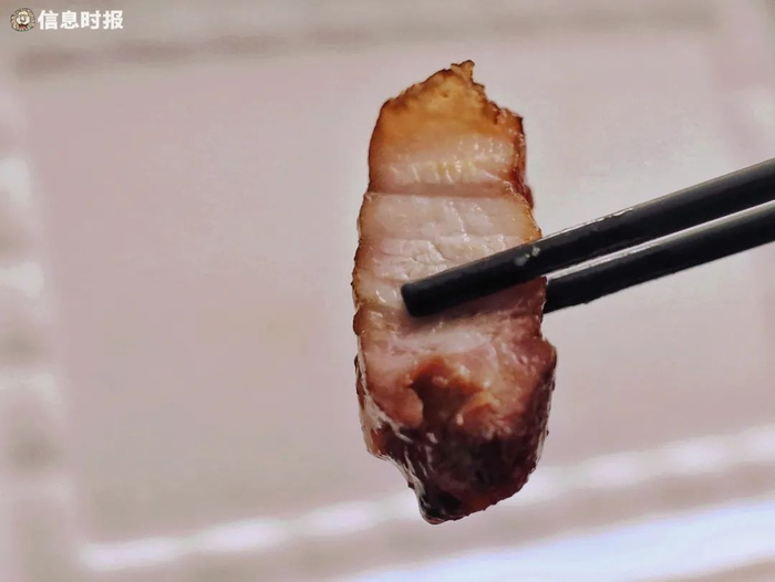 记者打包了一盒烧鹅,坦白说,陈仔的烧鹅不及永兴香,烧鹅皮放久后有点缩水,鹅肉纤维也略显粗糙。难怪有食客感叹,陈仔烧鹅没有了当年那股柴火香味。还好,陈仔烧腊出品的叉烧和烧排骨品质依旧有保证。用梅头肉烧制而成的叉烧,肥瘦相宜,边角位置还带着焦香味。打包时,斩料阿姨大方地将滴落在托盘上的叉烧汁刮起一勺淋在叉烧和烧排骨上,捞饭最是一流。